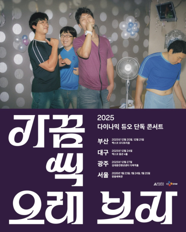 한편, 다이나믹 듀오의 단독 콘서트 ‘가끔씩 오래 보자’ 부산, 대구, 광주 공연에 대한 티켓은 온라인 예매처 NOL 티켓(구 인터파크 티켓)에서