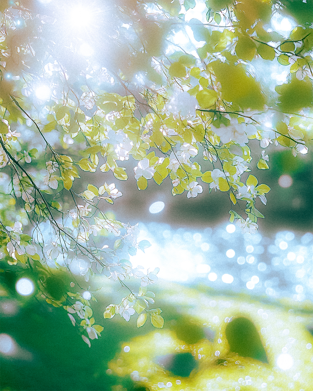 이와 함께 공개된 사진은 반짝이는 윤슬과 흩날리는 벚꽃을 담아냈다.