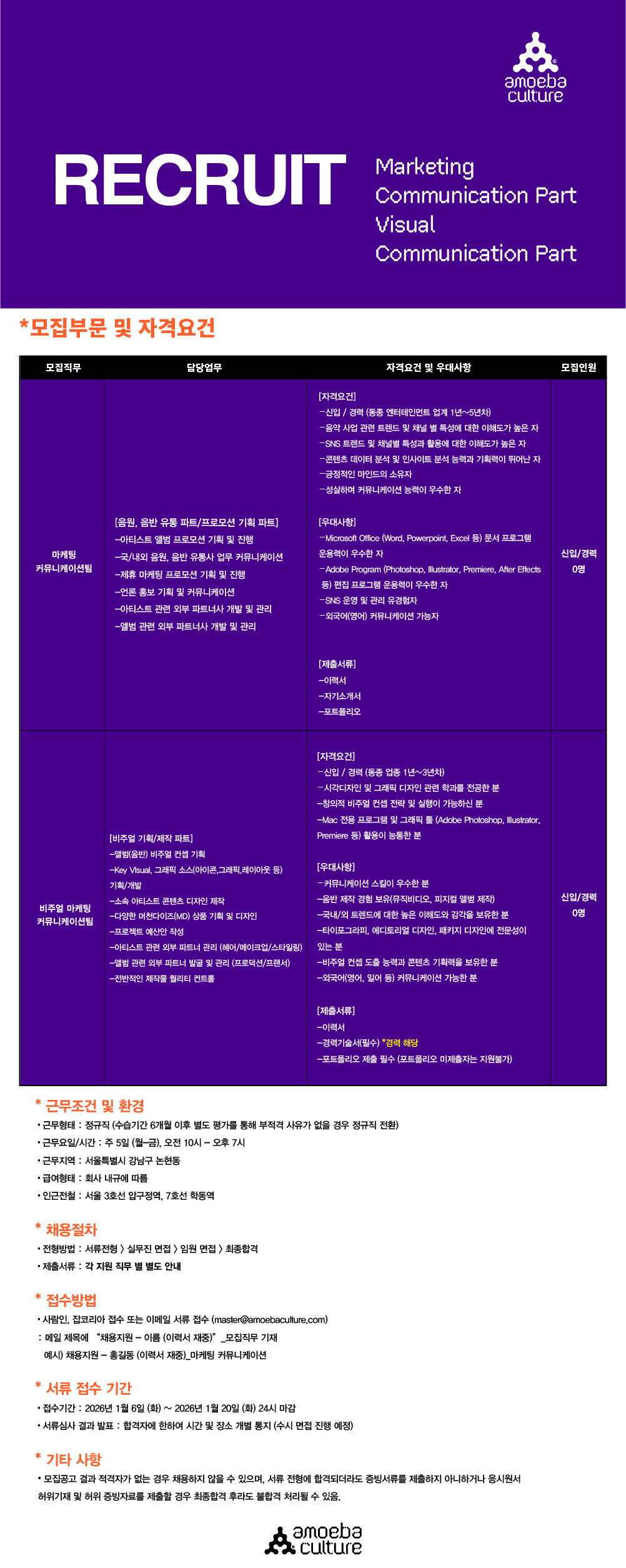 아메바컬쳐 마케팅 커뮤니케이션, 마케팅 커뮤니케이션 비주얼파트 신입/경력직 채용공고